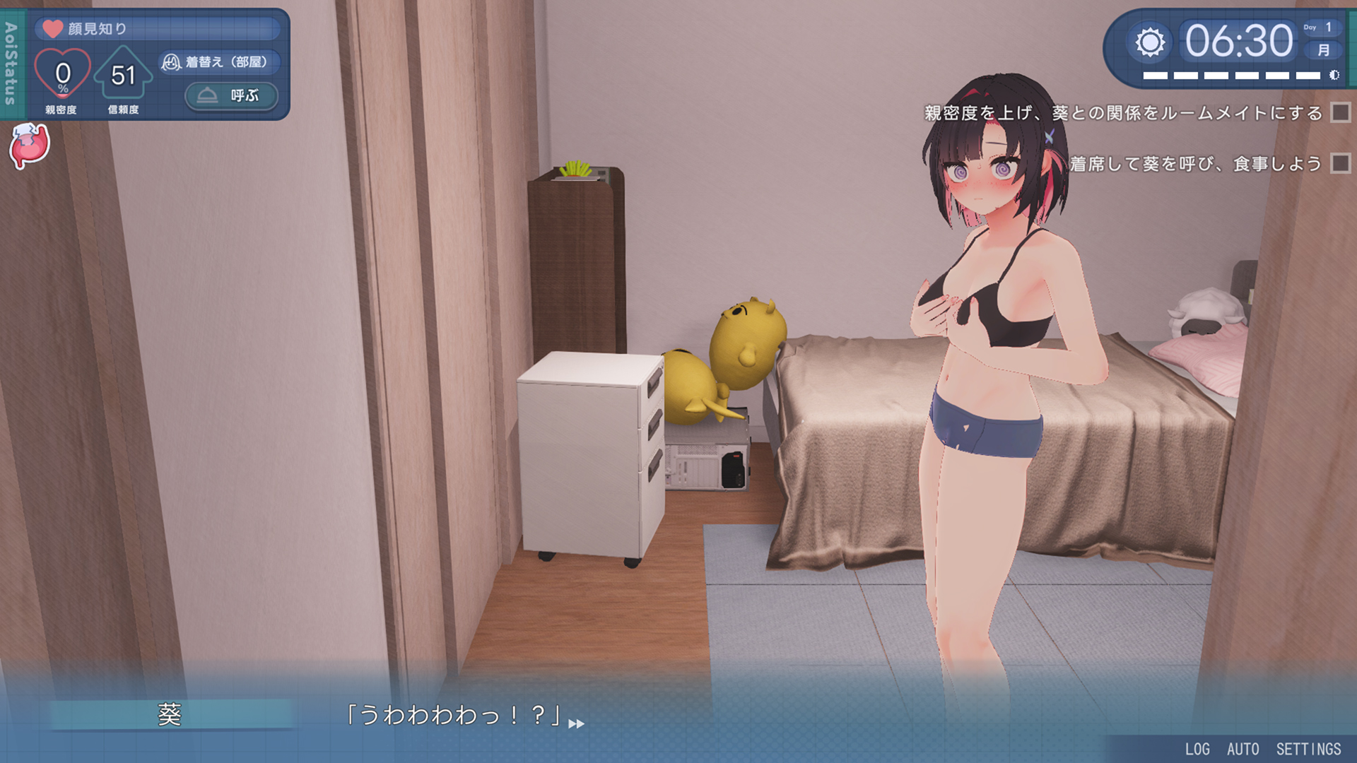 深夜にこっそりアオイちゃんの部屋に忍び込むことができます。